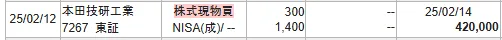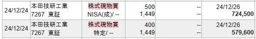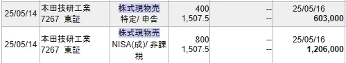 それでは、私のHONDA株の売買履歴を確認してみます