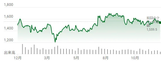 ただ年末は1540円とほぼ前年末に戻ってきています。