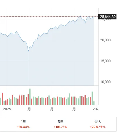 NASDAQ100もトランプショックの影響を受けました、ですが現在は2025年年初の水準に対し19%以上の上昇